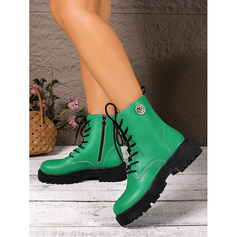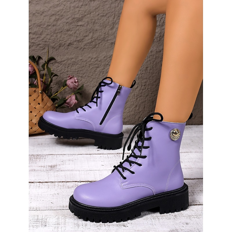 Highlights - current combat boots designed with faux leather upper for a trendy look - Round toe shape for added comfort and style - Durable rubber outsole for long-lasting wear - Stay ahead of the 2025 trends with these chic combat boots