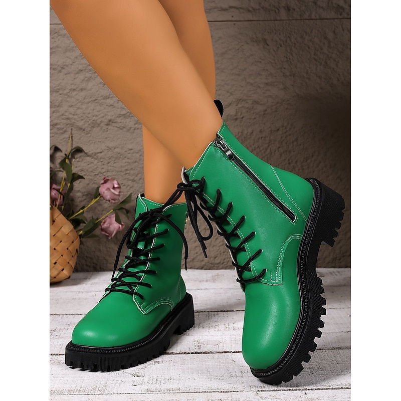 sizzling ! Women's Yellow Lace-Up Combat Boots – Bold Chunky Platform Ankle Boots with Side Zipper, Punk Streetwear Style for Fall Winter