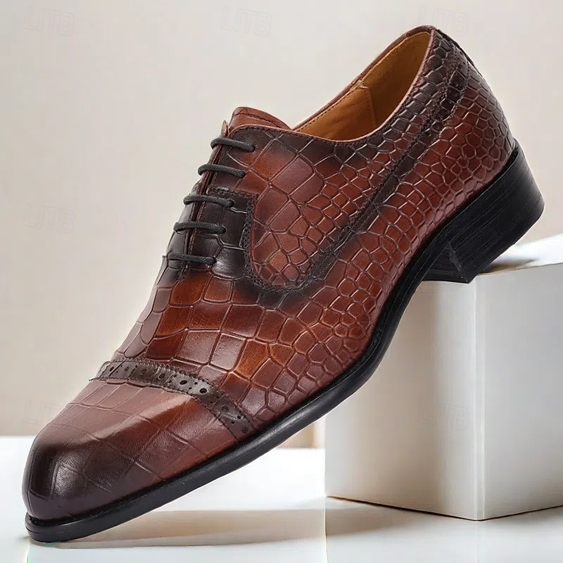 More information about Men's Brown Crocodile Pattern Leather Oxford Shoes – Kentucky Derby Shoes for Formal Occasions