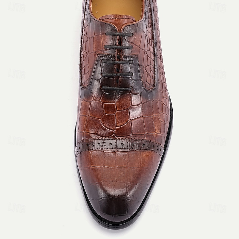 sizzling ! Men's Brown Crocodile Pattern Leather Oxford Shoes – Kentucky Derby Shoes for Formal Occasions