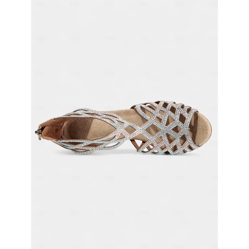 Highlights [Fabric] : Crafted with sparkling glitter and embellished with rhinestones, these dance sandals offer both elegance and durability. The high-quality materials ensure a luxurious look and feel, perfect for making a statement on the dance floor. [Design] : Featuring an open-toe design with intricate rhinestone detailing, these sandals are an epitome of glamour and sophistication. The strappy design not only provides a secure fit but also contributes to a stylish appearance. The mid-height heel offers a flattering lift, making these shoes comfortable for extended wear. [Design Highlights] : The intertwining straps, adorned with shimmering rhinestones, are designed to catch the light beautifully, adding a touch of sparkle with every step. The soft beige lining and footbed offer cushioning for enhanced comfort, ensuring you can dance the night away. [Occasions] : Perfect for ballroom, salsa, Latin dancing, and special evening events. These versatile sandals add charm and style to a variety of occasions, from formal dances to lively festive gatherings. [Size Range] : Available in a wide range of sizes from US5/EU35/UK3 to US10.5/EU42/UK8.5, these sandals offer a standard fit. It is recommended to select your usual size for the best fit. Perfect for everyday use. top-grade materials and excellent craftsmanship ensure long-lasting durability.