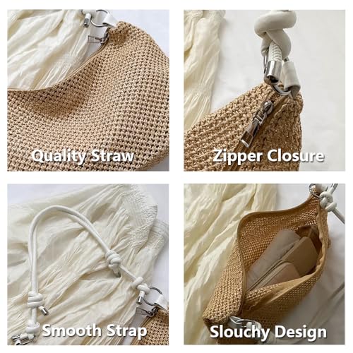 Fabric type: Woven StrawOrigin: ImportedOuter material: Woven StrawInner material: No liningPremium Workmanship: Crafted with handwoven natural straw, this summer straw hobo bags for women blends organic texture with everyday durability. The smooth zipper keeps your belongings secureVersatile Carry Options: Effortlessly transform from a slouchy hobo bag to a sophisticated shoulder bag or hands-free crossbody with an adjustable strap ( Length: 10.8-21.6). Switch styles in secondsLightweight and Portable: Measuring 11.2'' x 3.4'' x 7.5'' ( L x W x H ), this straw beach bag effortlessly holds essentials such as phone, cards, makeups, earphonesSummer Beach Bags for Women: Handwoven straw shoulder bag elevates every look from beach cover-ups to sundresses. Instantly boho-chic with wedges, flats, or barefoot vibesWidely Used: This summer beach straw purse is suitable for summer parties, beach trips, wedding, shopping or holiday camping, adding a touch of breezy coastal charm to your look. Warm Tips: A slight smell is normal due to manufacturing materials and can be eliminated by airing it out Perfect for everyday use. premium materials and excellent craftsmanship ensure long-lasting durability.