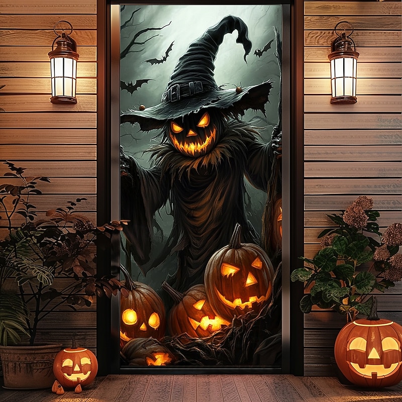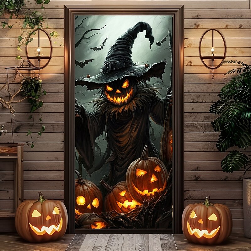 Halloween Door Decorations Halloween Door Covers Ghost Witch Door Tapestry Door Curtain Decoration Backdrop Door Banner for Front Door Farmhouse Holiday Party Decor Supplies