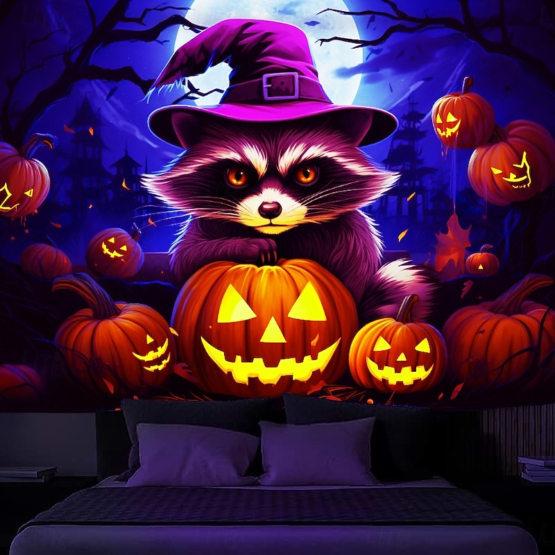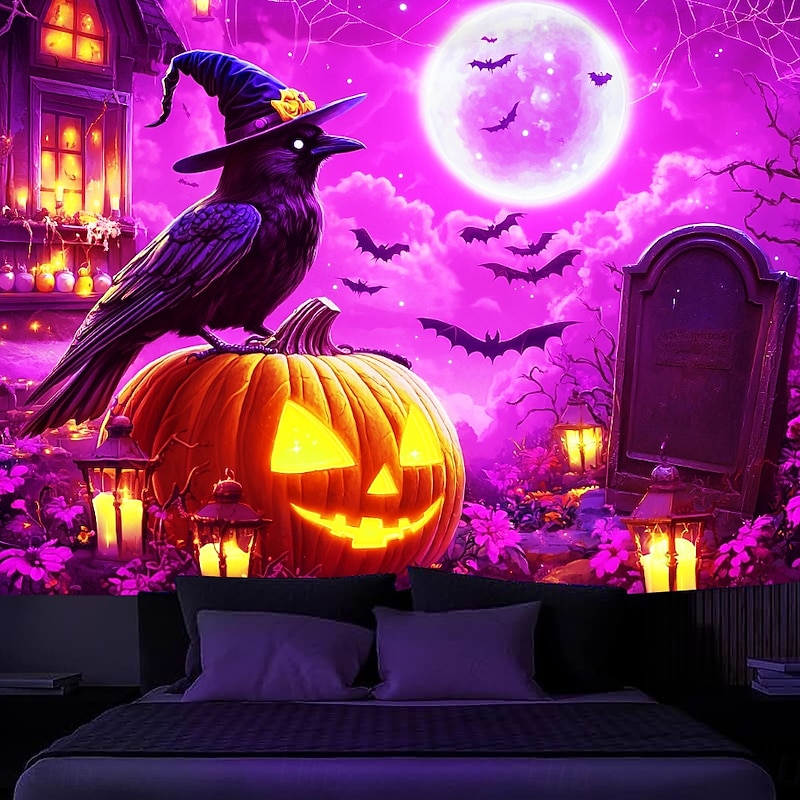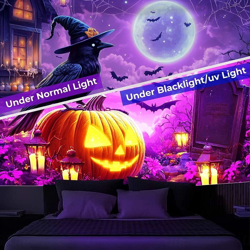$13.99 - Halloween Decorations Blacklight Tapestry UV Reactive Glow in the Dark Glow Party Jack O Lantern Pumpkins Psychedelic Trippy Misty Bat Hanging Tapestry Wall Art Mural for Living Room Bedroom Black Cat 2025. Shop for cheap Halloween Wall Tapestries online? Buy at lightinthebox.com on sale today!
