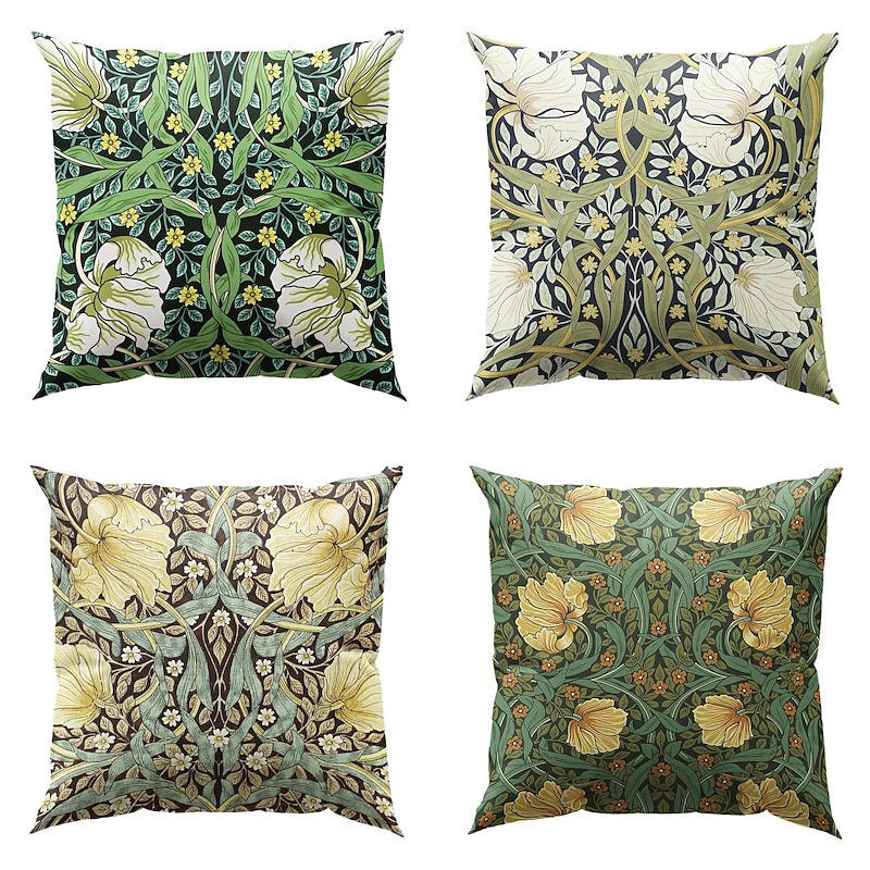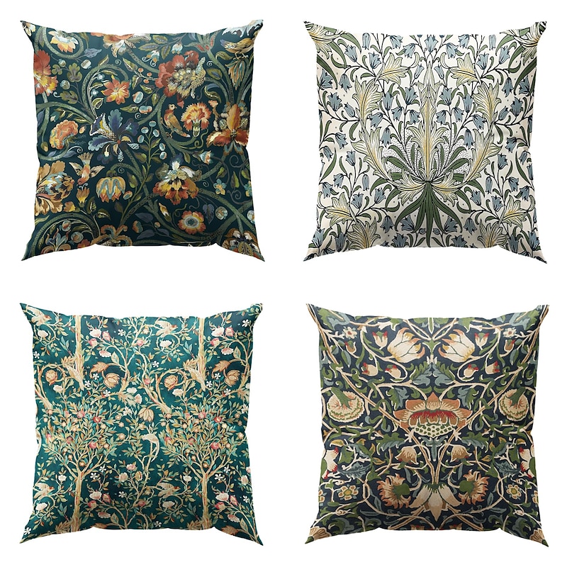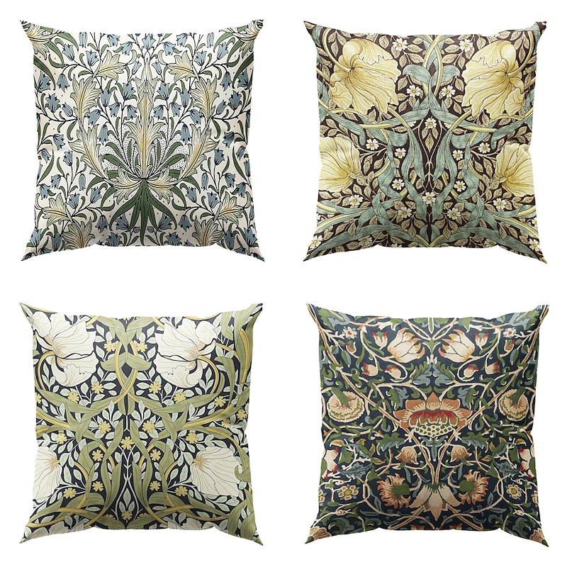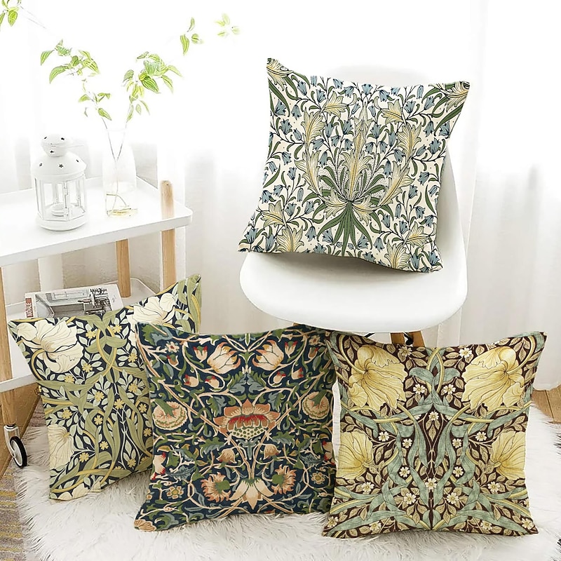 William Morris Double Side Pillow Cover 4PC Floral Plant gentle Decorative Square Cushion Case Pillowcase for Bedroom Livingroom Sofa Couch Chair