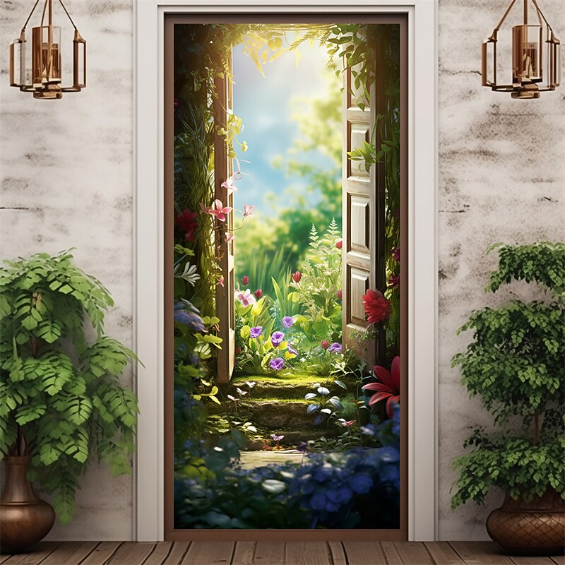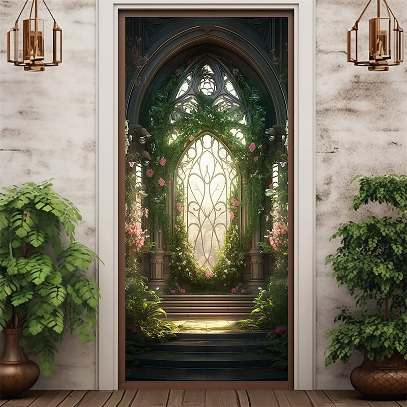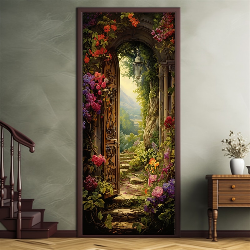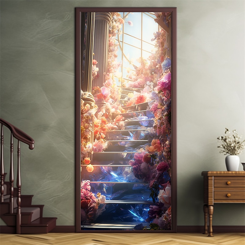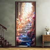 Valentine's Day Floral Stairs Door Covers Door Tapestry Door Curtain Decoration Backdrop Door Banner for Front Door Farmhouse Holiday Party Decor Supplies