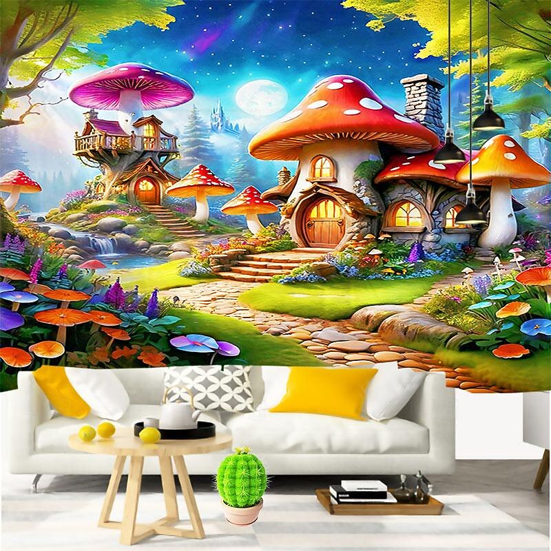 sizzling ! Fantasy Mushroom House Hanging Tapestry Wall Art Large Tapestry Mural Decor Photograph Backdrop Blanket Curtain Home Bedroom Living Room Decoration