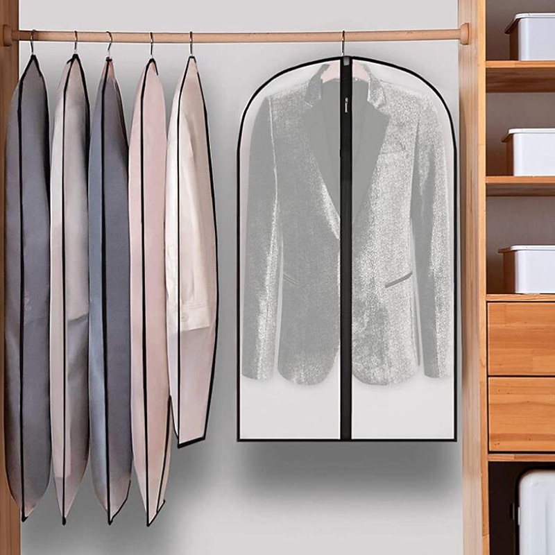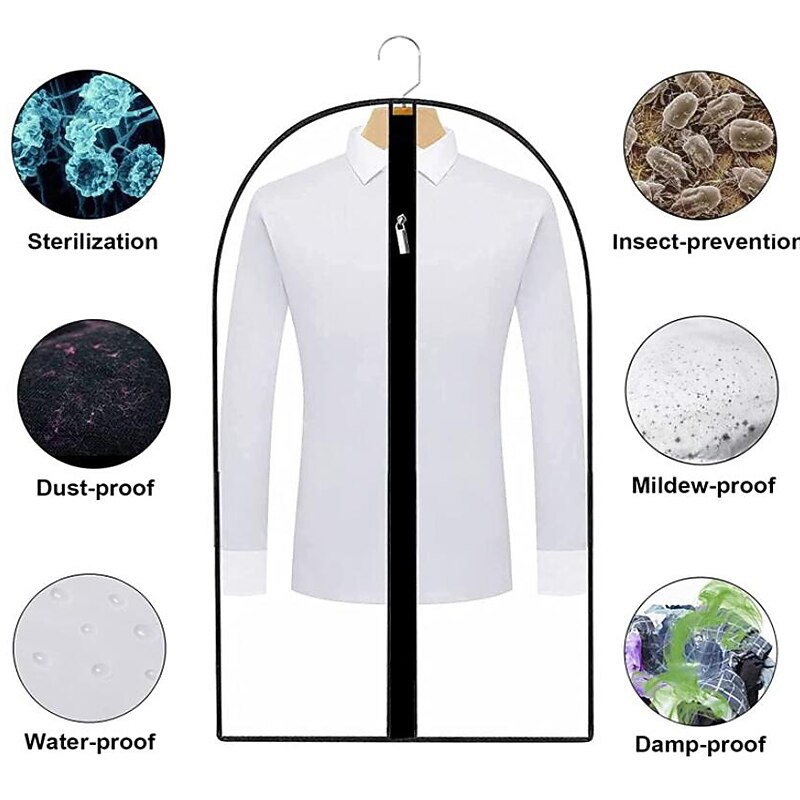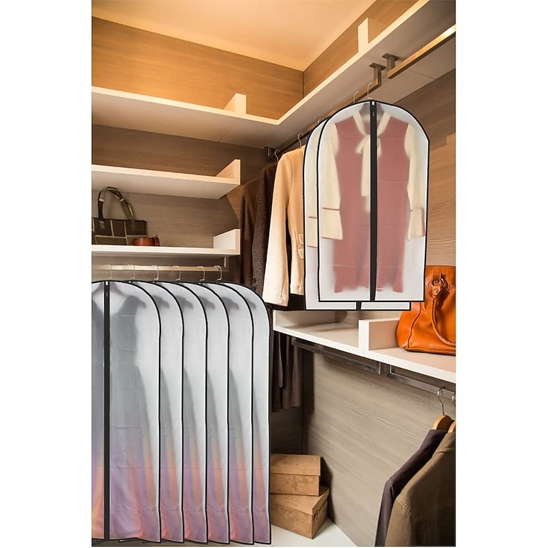 Highlights - top-grade Fabric: Made of durable, tender PEVA material that is washable, lightweight, and breathable. Can be used for a lifetime and is resistant to dust and water. Keeps clothes safe from dust, moisture, wrinkles, and pet hair. - Set of 6: Comes in a pack of 6 garment bags, perfect for all your storage and travel needs. - Translucent Zipper Design: The zipper design allows for easy viewing and access to your clothes without having to open the cover completely. - Safe and Non-Toxic: The garment bags are free from formaldehyde and are made with a transparent and breathable material. They can be washed and reused multiple times while still maintaining their quality.
