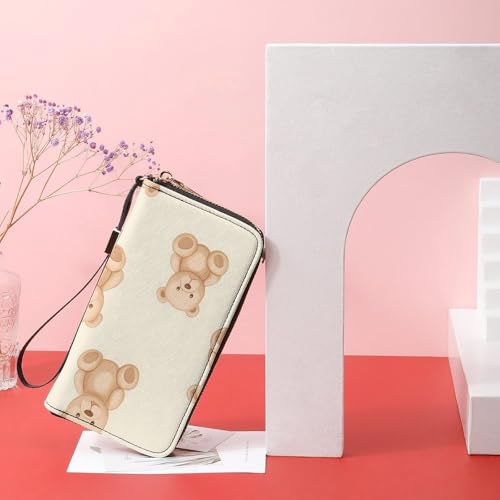 More information about Teddy Bears Brown Beige Women's Leather Clutch Wallet with Zip Card Holder Hand Strap Large Capacity