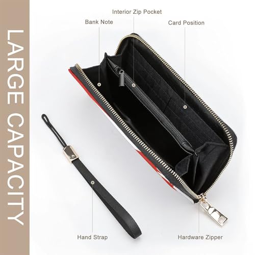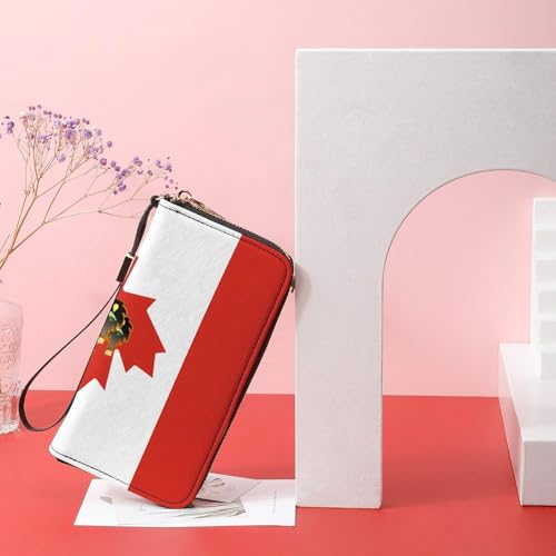 Canada Maple Syrup Canadian Flag Women's Leather Clutch Wallet with Zip Card Holder Hand Strap Large Capacity
