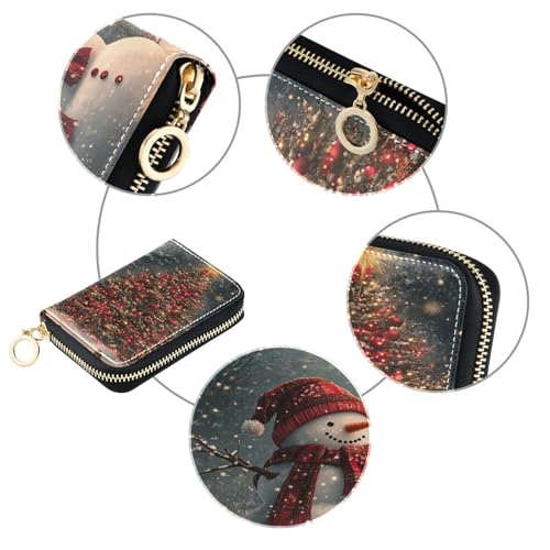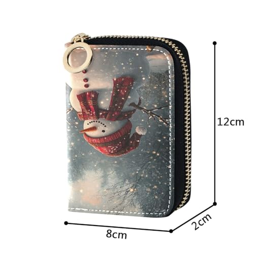 Small RFID Credit Card Holder Wallet with Zipper, Leather Wallet Case for Women Snowman
