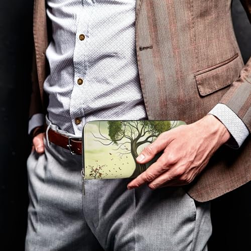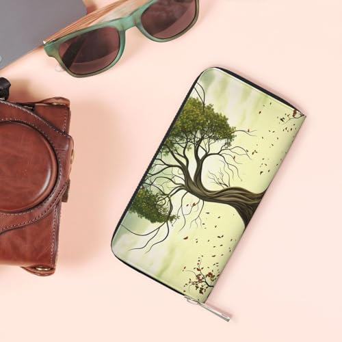 Trees Leather Wallet For Women Girl, Zip Around Credit Card Holder Long Pu Wallet Clutch Purse Waterproof Travel Handbag