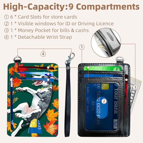 Credit Holder Slim Wallet, PU Leather RFID Blocking, Women & Men Front Pocket Small Card Holder, Credit Card Wallet with Wristlet, handy Travel Business, Maple Leaves Cute Dog