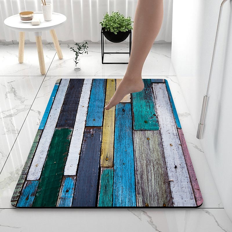 sizzling ! Diatomaceous Earth Bath Mat Color Stripe Pattern Super Absorbent Bathroom Rug Door Mat newly-released Design