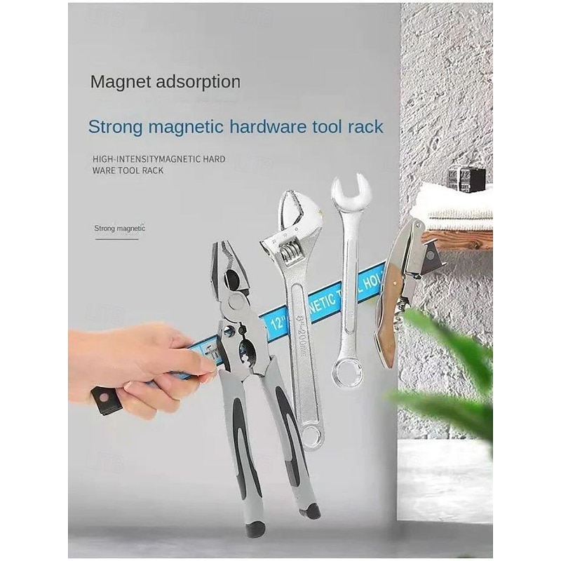 Highlights - Save space and get organized with the robust magnetic tool bar - Great magnets for tools and other items you need to stick on - Strong enough to hold hedge sheers and pick up dropped nails, screws, nuts, and bolts - Set of 8 pieces with mounting brackets, screws, and S hooks - Carbon steel frame with powerful magnetic attraction - Each bar can hold up to 50 lbs - tough and sturdy construction - Easy installation with mounting screws and brackets - Efficient way to keep frequently used tools within reach.