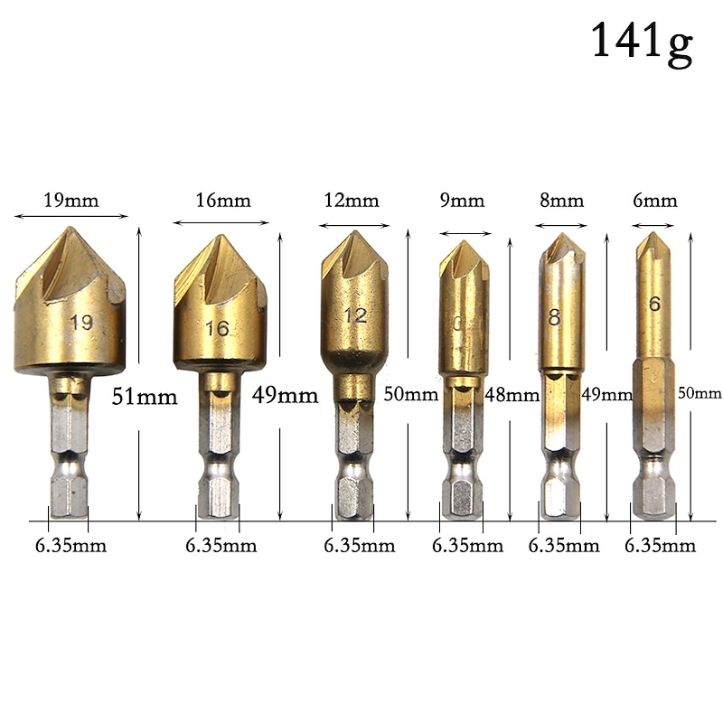 $7.99 - 1/4 Hex 6pcs 6-19mm Chamfering Debur Countersink Drill Bit 5 Flute 82 Degree Set For Wood Quick Change Countersink Bits 2025. Shop for cheap Drill Bit Set online? Buy at lightinthebox.com on sale today!