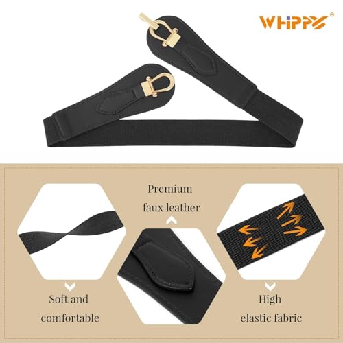 WHIPPY Women Wide Elastic Waist Belt for Dress Fashion Gold Buckle Stretchy Belts Ladies Waistband 1.38 Inches Width