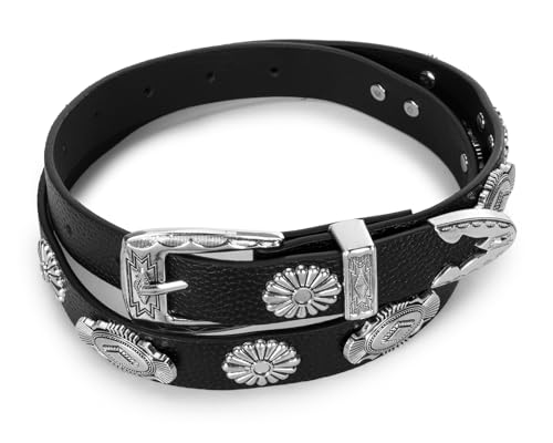 • Shiny Studded Design:The black leather belt comes with a sparkling sliver buckle and sliver studs, give more vintage and sophisticated for your casual wear.The metal design of the western cowgirl belt is create a eye-catching looking for your western outfit
