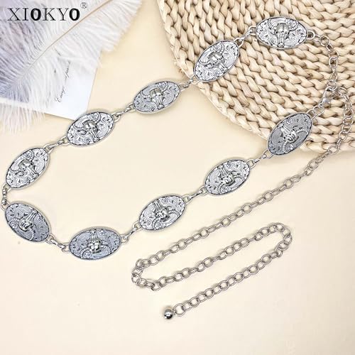 sizzling ! Women Chain Belt Western Belts for Woman Boho Country Concho Belt Oxen Horses Metal Belt for Dress