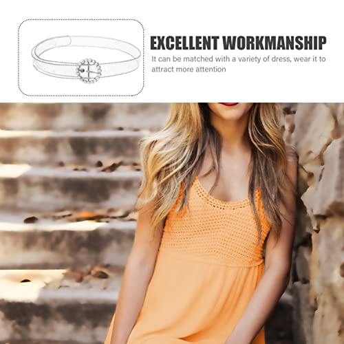 • Quality- The waist belts for women are made of PVC, zinc alloy, and faux pearl. The Womans clear waist is about 102cm/ 40.15inch in length ( no including Buckle ), and 2.5cm/ 0.98inch in width. One size fits entire.