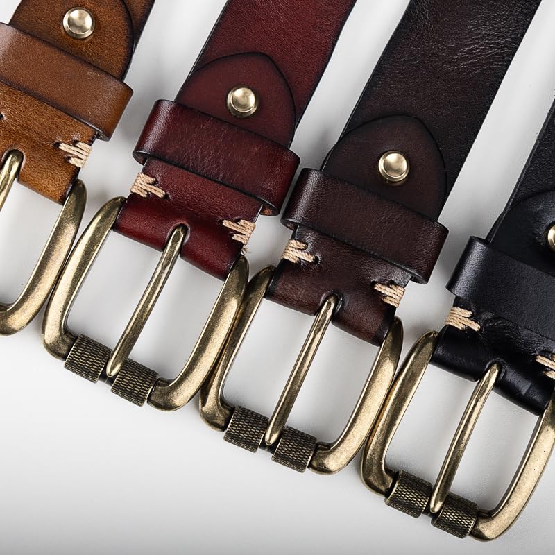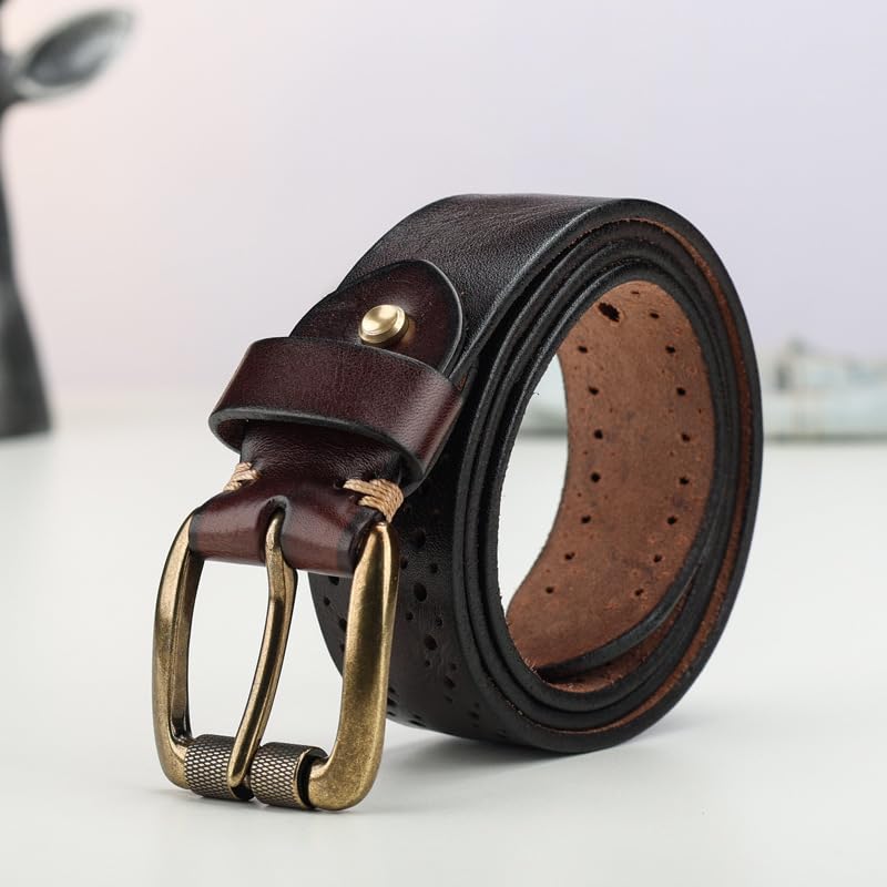 Excellent cowhide material: The belt is wrapped in full cowhide, there are no seams on both sides of the belt, no oil edges, comfortable and soft, can be knotted at will, and can provide excellent comfort.Comfort around the waist: The men's belt is comfortable and breathable and does not restrict the waist, especially long-distance travel can better bring a comfortable belt.Perfect shape: Fashion design, precise fit. The easily removable buckle allows you to cut the belt to the ideal size for a perfect customized shape!Belt for everyone: This belt is not only suitable for men, but also for anyone, such as teenagers, women and boys. An ideal gift for loved ones or friends.Excellent belt: Show a bold personality. This belt can add a touch of color to any casual outfit and is best paired with jeans or khakis and casual shoes. Enjoy the handmade quality of this casual belt. Perfect for everyday use. High quality materials and excellent craftsmanship ensure long-lasting durability.