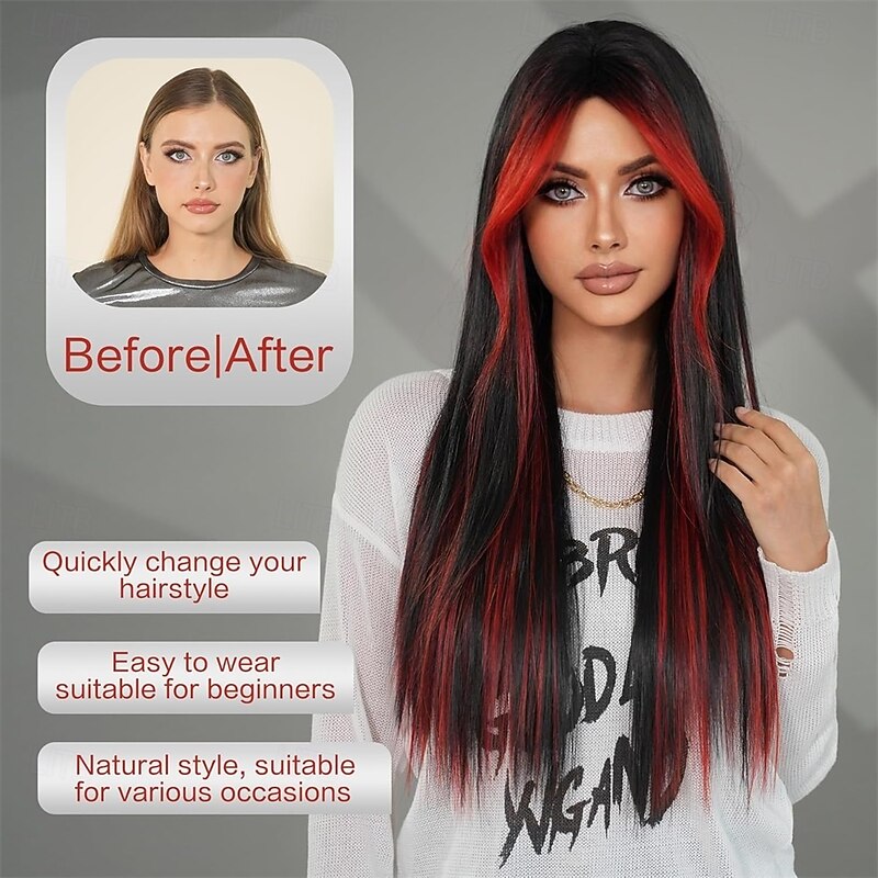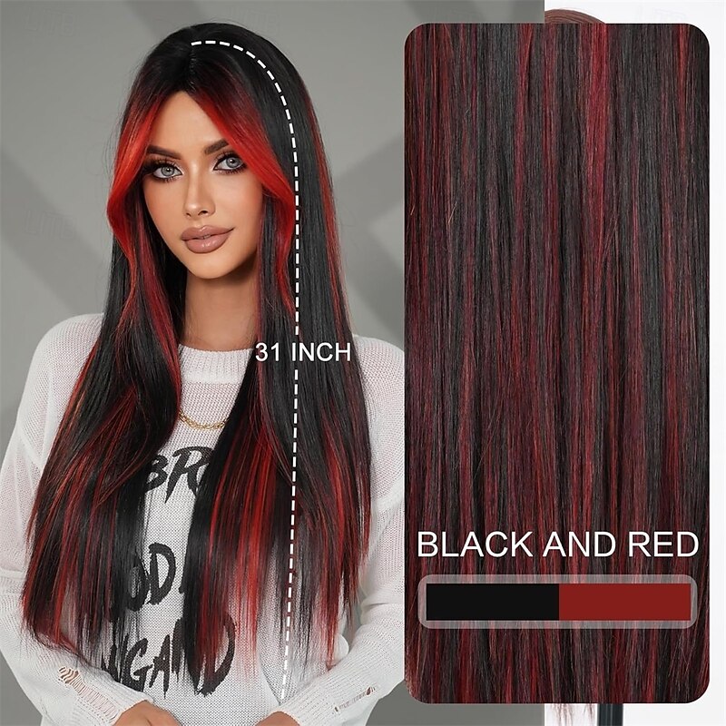 $25.99 - 31in Ombre Red Black Long Straight Highlight Wigs with Curtain Bangs Natural Heat Resistant Synthetic Fiber Layered Highlight Midlle Part Women Wigs for Chrismas Daily Party Daily Used 2025. Shop for cheap Party Wigs online? Buy at lightinthebox.com on sale today!