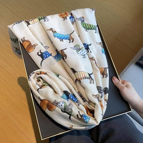 Women's Elegant Pet Pattern Scarf, Dachshund Scarf Shawl, smooth Cotton Linen Shawl, High-end Aristocratic Style for Office Ladies, Natural Cimple Women's Wraps & Pashminas for Dog Lovers