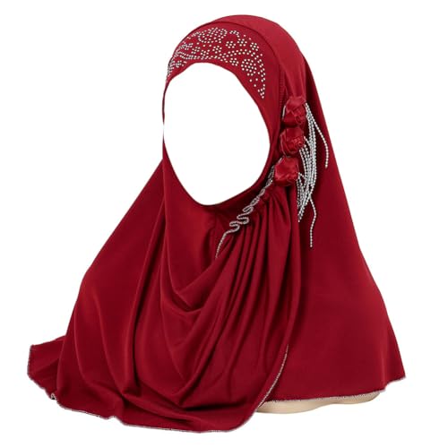 sizzling ! Women One Piece Muslim Hijab Lace Head Wrap Scarf Shawl with Rhinestones Muslim Hijab Head Wrap Scarf Shawl, Burgundy