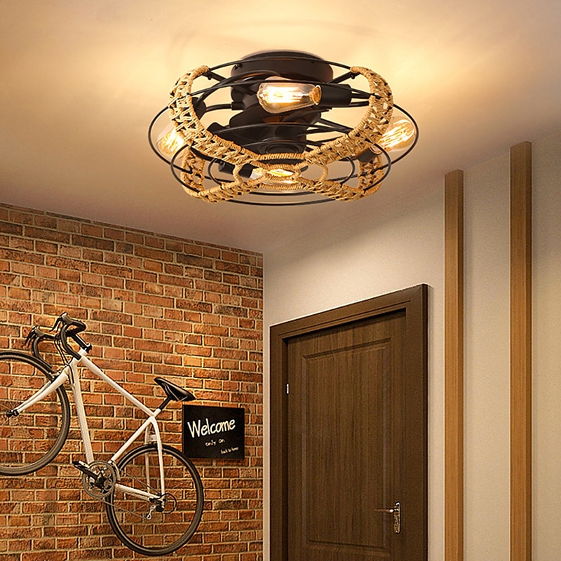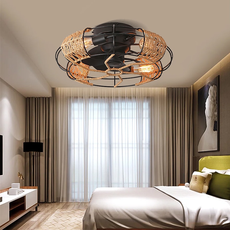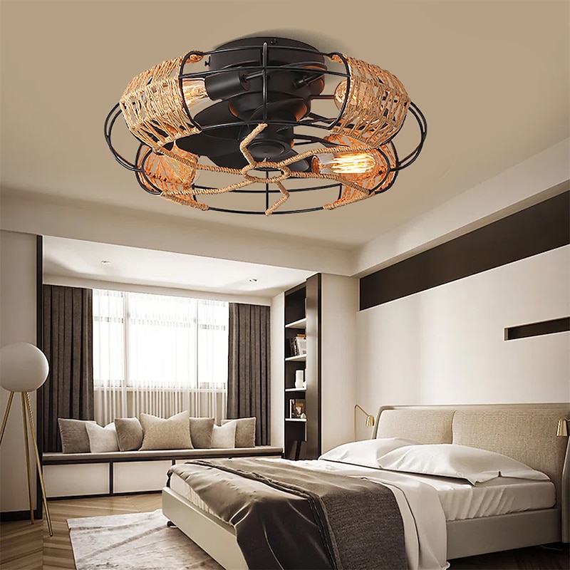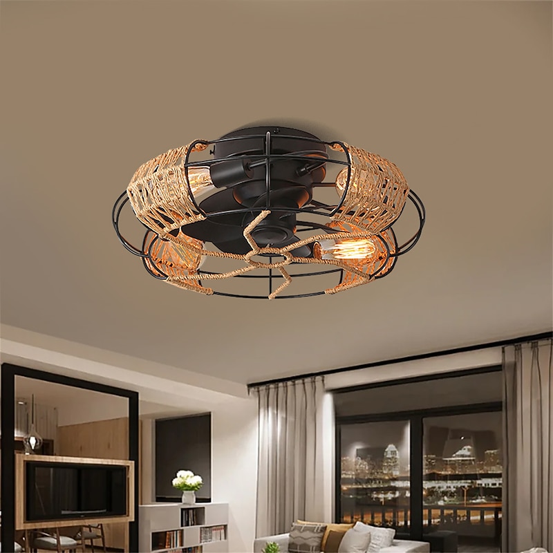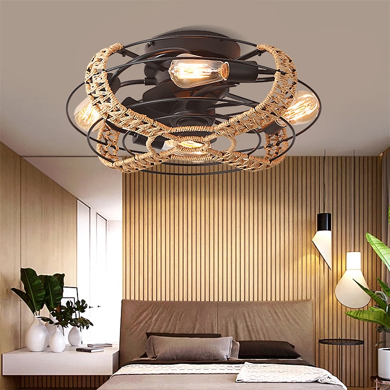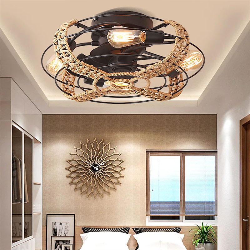 sizzling ! Ceiling Fan with Light and Remote 20 Cage Low Profile Bladeless Farmhouse Flush Mount Boho Ceiling Fans Light Enclosed Industrial Ceiling Fan 6 Speed Reversible with 4 Bulbs.