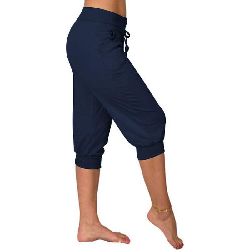 More information about Women's Yoga Pants Drawstring Cropped with Pockets Tummy Control High Waist Gym Workout Running Fitness Capri Pants Bottoms Solid Color Dark Grey Navy Apricot Cotton Linen Fall Sports Activewear High