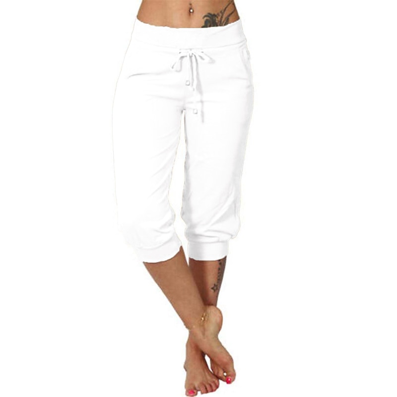 sizzling ! Women's Yoga Pants Drawstring Cropped with Pockets Tummy Control High Waist Gym Workout Running Fitness Capri Pants Bottoms Solid Color Dark Grey Navy Apricot Cotton Linen Fall Sports Activewear High