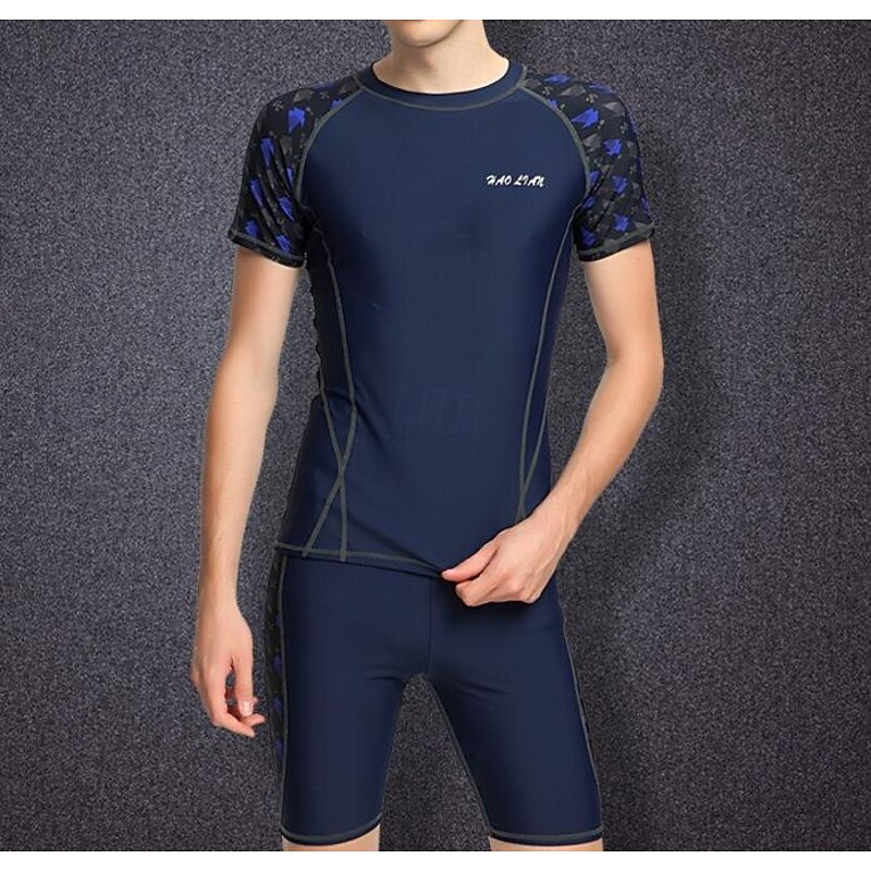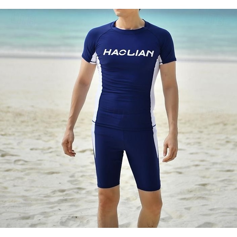 More information about Men's Rash guard Swimsuit UPF50+ expedient Dry Short Sleeve Swimwear Bathing Suit 2 Piece Swimming Surfing Patchwork Summer