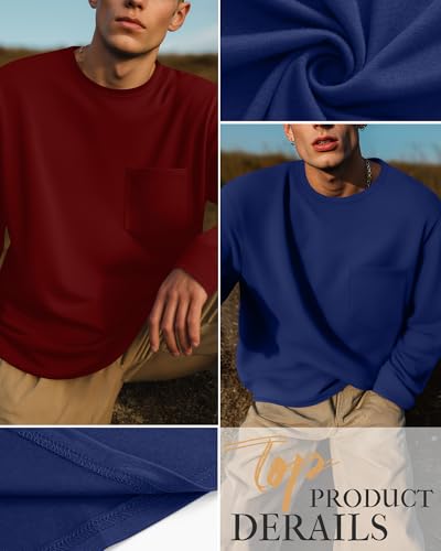• Flattering Look: This men's loose cotton tshirts features a basic design with a crew neck, long sleeves, solid color and pockets. The exclusive and convenient pocket design can hold items like pens. vintage design doesn't go out of style