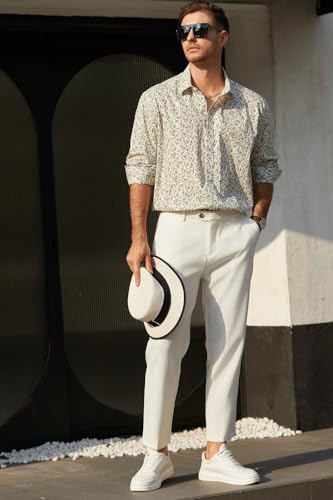 Men's Floral Dress Button Down Shirt Mens Long Sleeve Casual Cotton Shirt