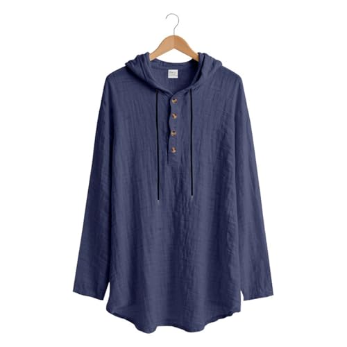 sizzling ! Mens Cotton Linen Long Sleeve Hoodies Casual Loose Button Down Drawstring Shirts Fall Lightweight Henley Clothes