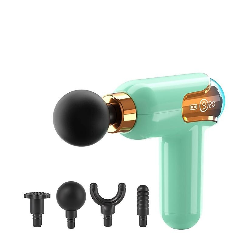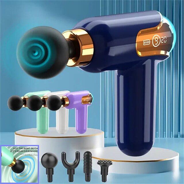 Highlights - Deep Muscle Relaxation: This massage instrument effectively relieves muscle soreness and stiffness while stimulating blood circulation and releasing lactic acid. It provides a plush feeling and is particularly effective for relieving back and neck pain. - 9 Levels Intensity + 4 Massage Heads: With 9 different speed options and 3200 rpm, you can easily find the vibration amplitude that suits you best. Additionally, the device comes with 4 different types of massage heads, allowing you to target different body parts and muscle groups for a customized massage experience. The massage heads are removable, making installation and cleaning effortless. - Super Quiet + LCD Screen: Designed with a brushless high torque motor, this deep tissue massage gun operates at only 30dB - 50dB, making it super quiet during use. The device also features an LCD screen for easy monitoring and control. It also has an intelligent power-off protection feature, automatically stopping after 20 minutes of use to offer safe and practical massage sessions. - 4 Massage Heads: The massage gun includes a spherical massage head for large muscle groups, a U-shaped massage head for the neck and cervical spine, a cylindrical massage head for deep tissue impact, and a flat massage head for various muscle relaxation and shaping purposes. - Available colors: Blue, White, Orange, Green, Purple. Perfect for everyday use. premium materials and excellent craftsmanship ensure long-lasting durability.