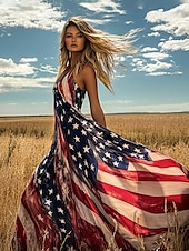 More information about Women's Patriotic Maxi Dress A Line Dress Slip Dress Vacation Casual Boho Beach Form Fit Graphic Flag Vintage Sleeveless V Neck Navy Blue Summer Spring