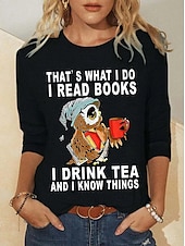 Highlights [Fabric] : Crafted from 100% cotton, this women's T-shirt offers a soft, breathable knit that ensures comfort throughout the day. The fabric provides micro-elasticity, allowing for ease of movement and a comfortable fit. [Fit Type] : Designed with a regular fit, this T-shirt features a relaxed silhouette that flatters various body types. The long sleeves and round neckline contribute to its laid-back yet sleek look. [Design Highlights] : The front of the top is adorned with a playful print featuring an owl in a sleeping cap, accompanied by the humorous text, That's what I do, I read books, I drink tea and I know things. This whimsical design is ideal for book enthusiasts or anyone who appreciates a cozy and thoughtful aesthetic. [Occasions] : Perfect for daily wear, weekends, and casual outings, this T-shirt adds a touch of personal flair to any relaxed occasion. Pair it with jeans or leggings for a comfortable and stylish look suitable for errands or lounging at home. [Size Range] : Available in a wide range of sizes from S to 3XL, accommodating various body types and preferences. Each size is crafted to provide a comfortable and flattering fit for every wearer. Perfect for everyday use. finest materials and excellent craftsmanship ensure long-lasting durability.