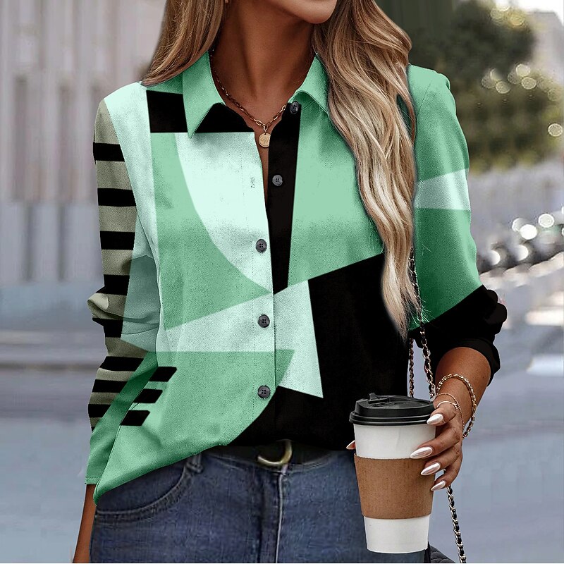 Women's Shirt Button Down Tunic Shirt Collar Long Sleeve Fashion Color Block s Print Regular Tops Casual Pink Blue Purple Green Khaki Spring & Fall