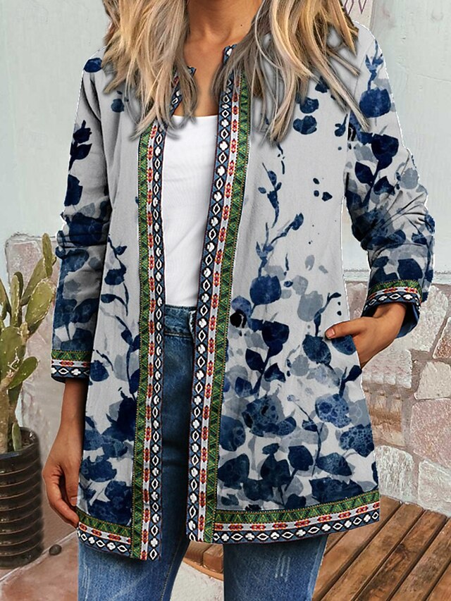This Women's Casual Jacket Windproof Warm Pocket Color Block Open Front with Pockets up-to-date Floral Casual Daily Casual Daily Short Crewneck Regular Fit Long Sleeve Outerwear Red Blue Khaki Fall combines elegant design with practical functionality. Every detail has been carefully considered to ensure you get the best possible experience. The supreme construction means this product will serve you well for years to come.