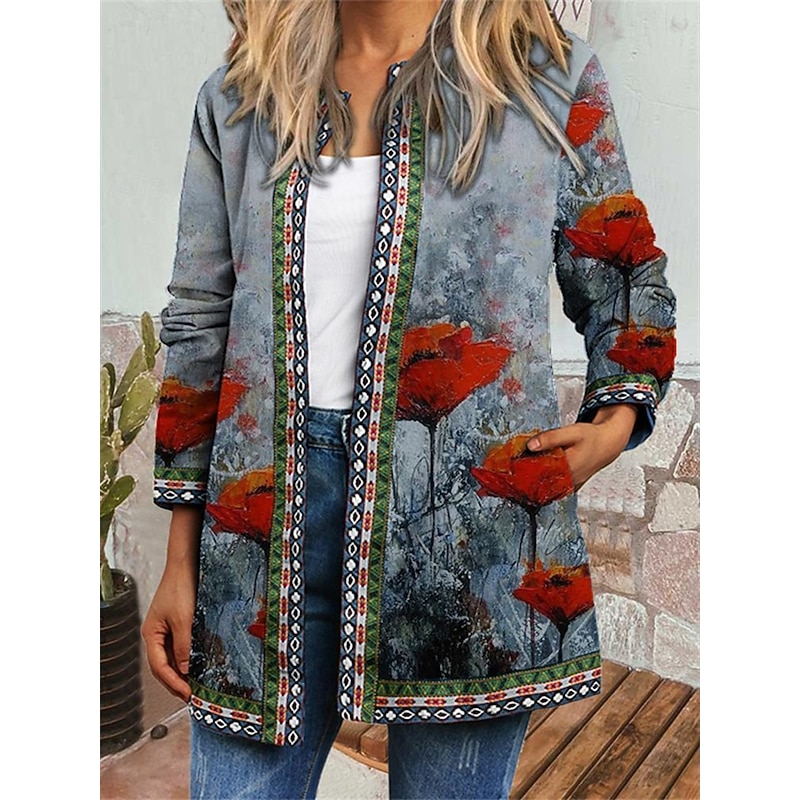 $31.99 - Women's Casual Jacket Windproof Warm Pocket Color Block Open Front with Pockets Modern Floral Casual Daily Casual Daily Short Crewneck Regular Fit Long Sleeve Outerwear Red Blue Khaki Fall 2025. Shop for cheap Casual Jackets online? Buy at lightinthebox.com on sale today!