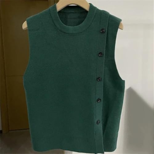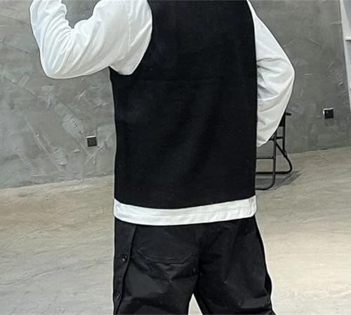 Men's Sleeveless Knitted Vest Crewneck Button Down Loose Fit Streetwear Sweater Waistcoat