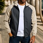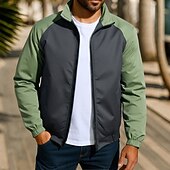 More information about Men's Outdoor Jacket Sport Coat Formal Home Pocket Zip Front Spring Fall Solid Color Color Block Active Neutral Shirt Collar Regular Red Green Khaki Jacket