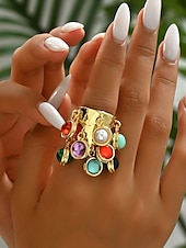 $11.99 - Women's Gold Chunky Ring with Colorful Charms - Boho Statement Cocktail Jewelry for Parties and Festivals 2025. Shop for cheap Women's Rings online? Buy at lightinthebox.com on sale today!