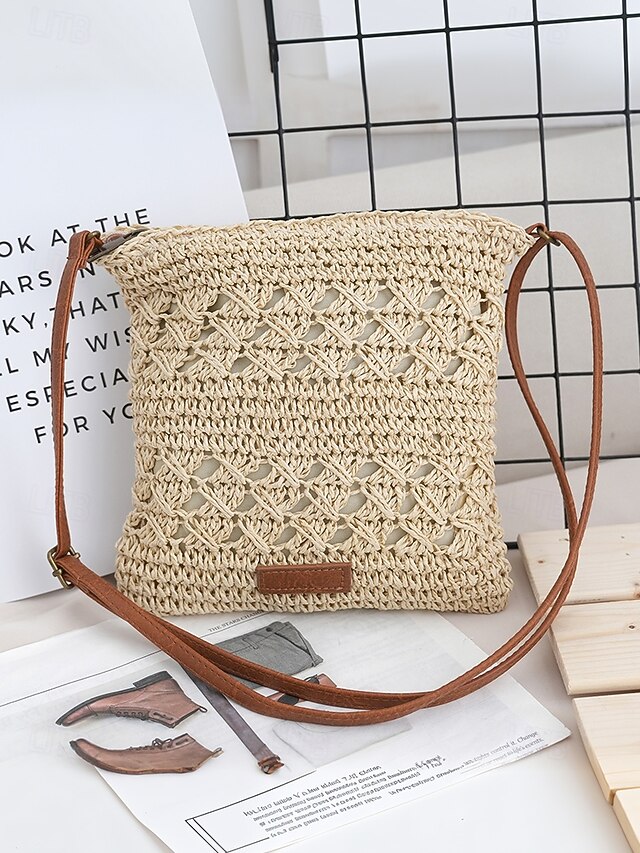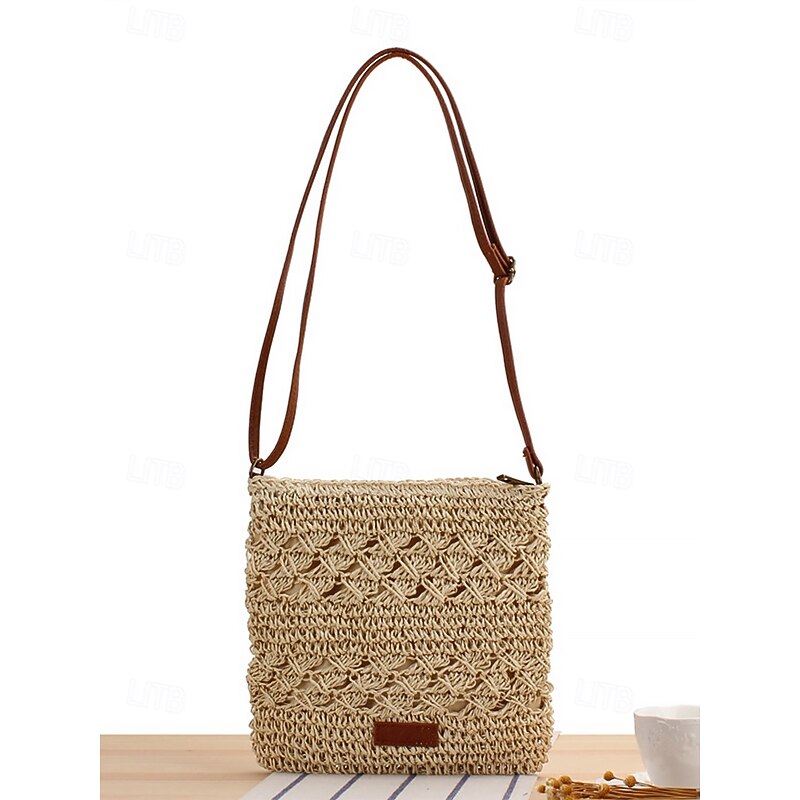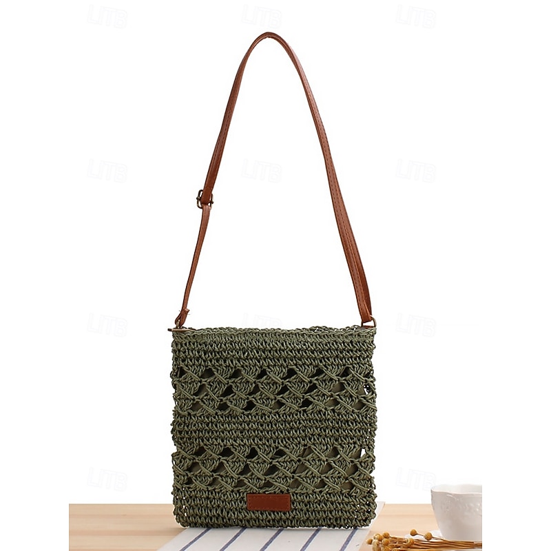 sizzling ! Handwoven Straw Crossbody Bag for Women – Boho Rattan Shoulder Bag with Adjustable Strap, Lightweight Summer Beach Purse for Vacation, Travel & Casual Outings Army Green Brown Khaki