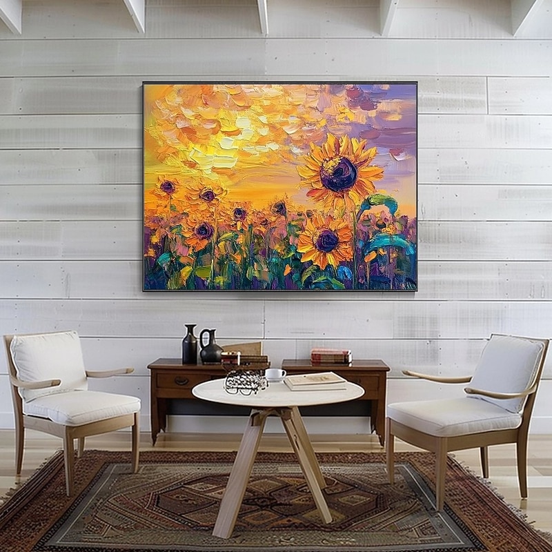 Why Choose Large Sun Flower Landscape Oil Painting On CanvasPastel Floral PaintingSpring SunFlower Scenery PaintingLarge Wall Art Living Room Decor?