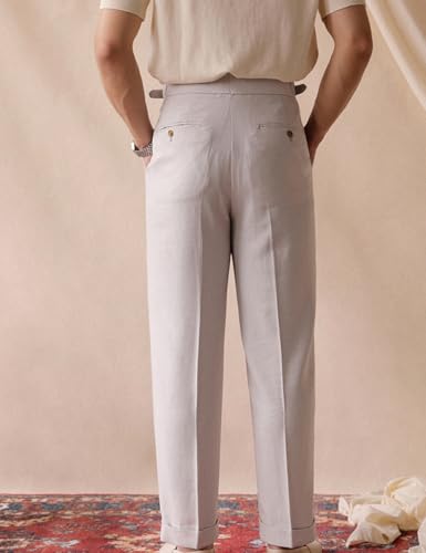 Men's Cotton enduring Fit Flat Front Dress Pants Retro Lightweight Gurkha Trousers Office Business