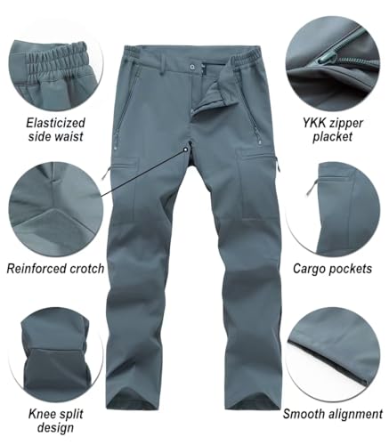 Gash Hao Mens Waterproof Ski Snow Pants Hiking Softshell Cargo Fleece Lined cozy Insulated Outdoor Fishing Pants