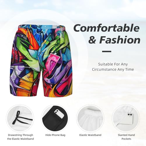 Graffiti Drawing Print Men chic Functionality Swim Trunks Breathable Beach Shorts Surfing Gym Fishing