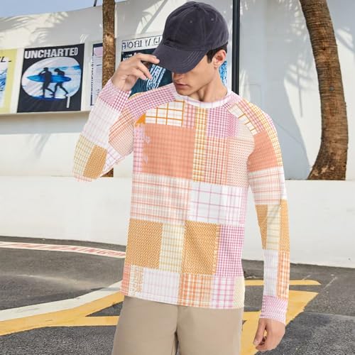 Herringbone Houndstooth Checked Orange Pink Jellyfishs Men's Rash Guard Breathable Comfort UV Sun Protection Shirts Running